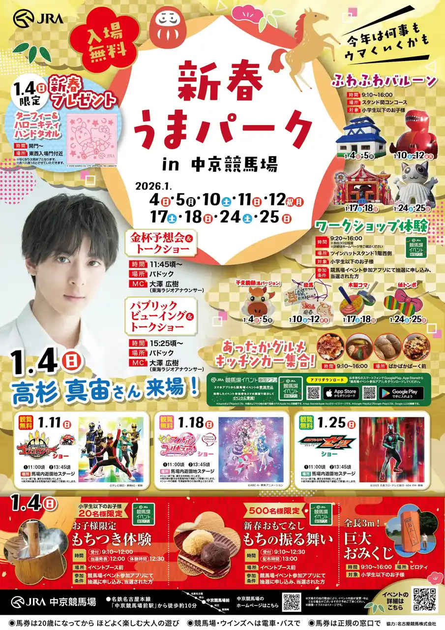 JRA中京競馬場では、新春イベントとして1月のパークウインズ営業日に家族みんなが楽しめるイベントを開催いたします |