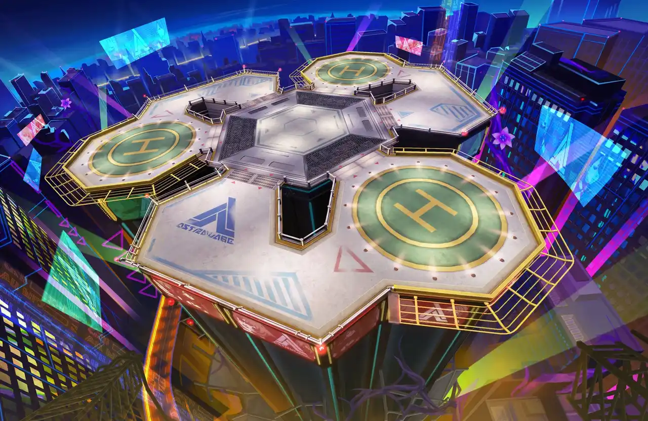 新マップ「高層ビル屋上」が登場します。「地上に残っていた高層ビルを競技用に改造したスタジアム」というシチュエーションで構成されており、E-スフィアどうしの距離が離れているのが特徴です。また、新ハプニングも追加されました |