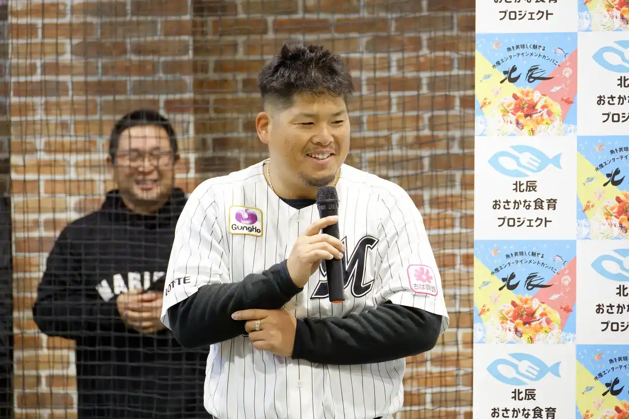千葉ロッテマリーンズの澤田圭佑投手と池田来翔選手と一緒に野球を学び、北辰水産特製のおさかな(鮭・しらす)おにぎりを味わいながら交流する特別なプログラムを実施しました。これからも北辰水産は、地域とのつながりを深め“魚食の楽しさと大切さ”を次世代へ発信していきます。 (北辰水産HP:https://www.hokushin-suisan.co.jp/) |