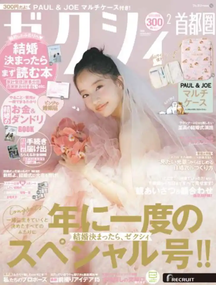 株式会社リクルート(本社:東京都千代田区 代表取締役社長:牛田 圭一、以下リクルート)が発行する結婚情報誌『ゼクシィ』2月号(2025年12月23日(火)発売 ※一部地域を除く)で、俳優の池端杏慈さんが表紙を飾ることになりましたので概要をお知らせします。『ゼクシィ』初表紙となる今回はピンクのボリュームドレス姿を披露。インタビューではゼクシィ15代目CMガールに就いてからの反響や大活躍だった2025年を振り返ってくれました。 |