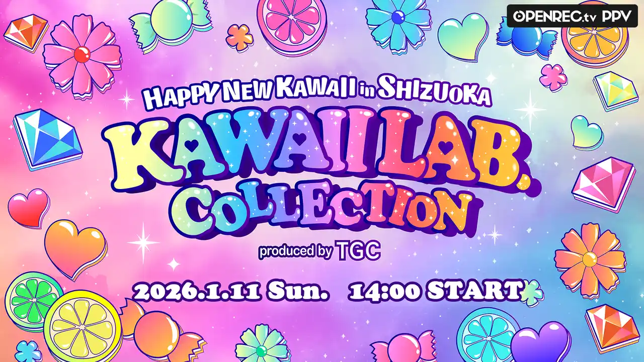 カワコレTGCの全編を、動画配信プラットフォーム『OPENREC.tv』内「KAWAII LAB. チャンネル」にて、独占生配信することが決定しました。年始一発目にKAWAII LAB.グループが大集合する、新しい年の始まりにふさわしい“HAPPY NEW KAWAII”ステージを生配信でお楽しみいただけます。 |