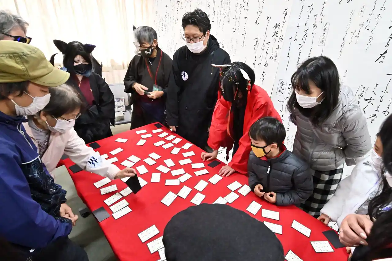 | 元日となる1月1日(木)には、「妖怪カルタ・百怪一首大会」を開催します。当日は、妖怪狂歌カルタ「百怪一首」の作者である天羽孔明氏をお招きし、11:00開始の第1回、13:00開始の第2回の計2回実施予定です。参加者全員に参加賞を用意するほか、各回の勝者には景品を進呈します。参加無料です。 | |||||||||