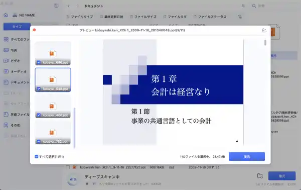・プレビュー機能:復元前にファイルの内容を確認できるため、必要なファイルだけを選択可能
