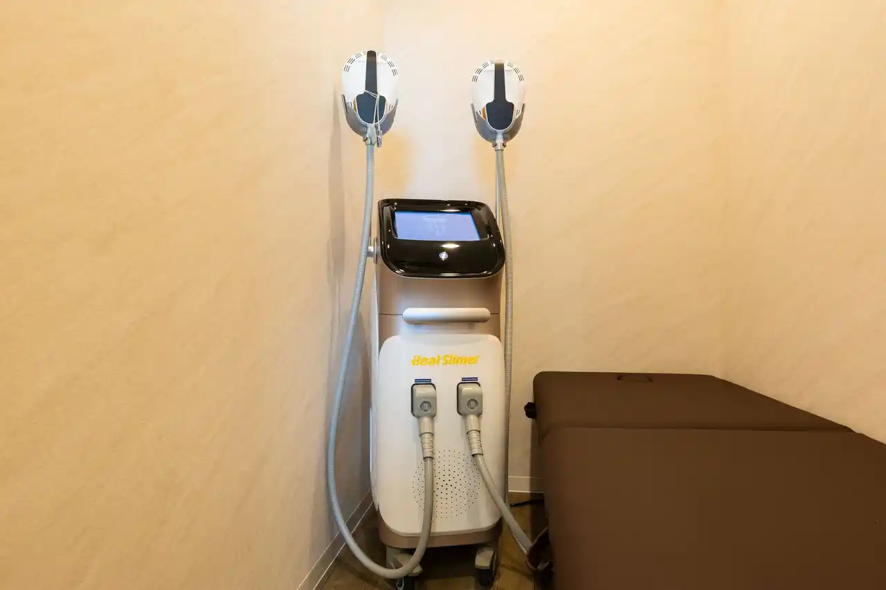 服を着たまま座るだけで「筋肉+脂肪」両方にアプローチできます。なかなか鍛えることのできない骨盤底筋や下半身を電磁パルスの刺激で座るだけで鍛えることができる美容マシンです。 |