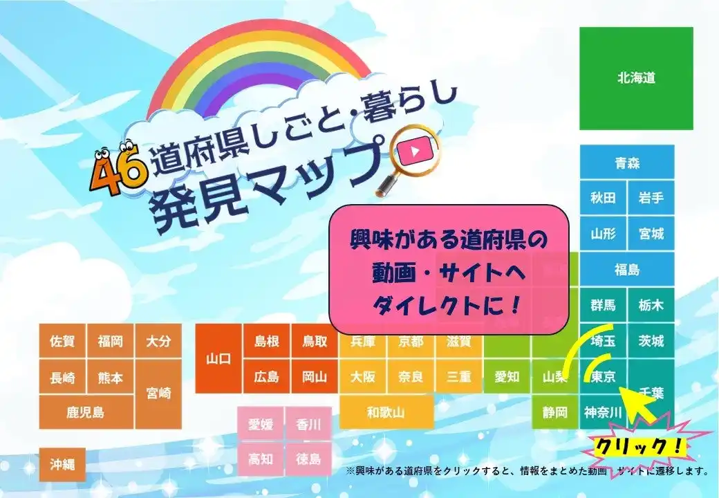 46道府県それぞれの魅力や支援制度が簡単に調べられる。自身の出身や居住している自治体のみならず。「観光で訪問した」「ニュースで見た」など気軽な好奇心から情報収集ができる、そんなマップをご案内します。 |