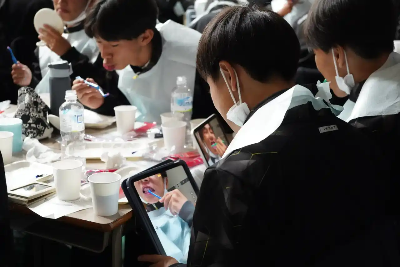 本取り組みは歯磨き指導ではなく、生徒自身が「自分のお口の状態を知り、将来を見据えて健康を管理する力」を身につけることを目的としたプログラムです。2023年から実施しており、今回で4回目の開催となりました。 |