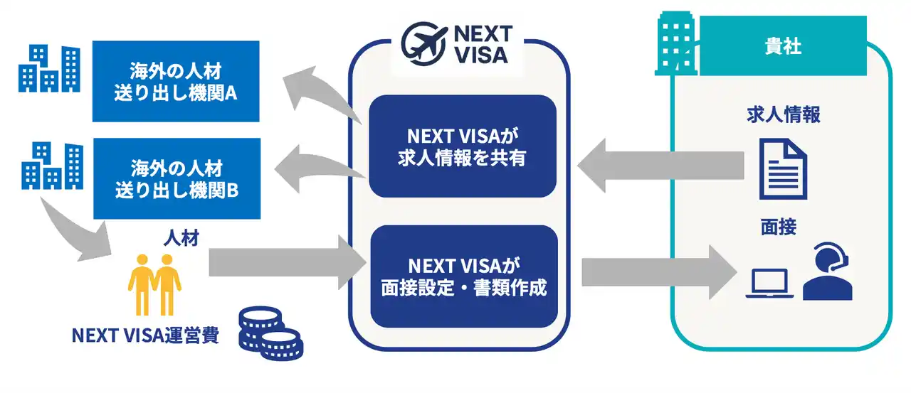 NEXT VISAは、安定したキャリアを求めるグローバル人材と企業を結びつけるキャリアコーディネート事業です。「外国人の労働環境をより良くしたい」という想いを起点に、人材を必要とする企業と、安心して長く働ける職場を求める外国人との最適なマッチングを実現しました。 |
