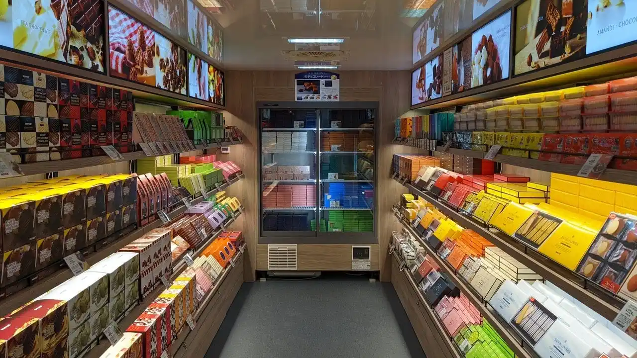 車内では、生チョコレートやポテトチップチョコレートといった人気商品や限定商品など最大約90種類(※)を販売しています。限られたスペースながらも北海道物産展を超える豊富な品揃えの中から商品をお選びいただけます。お近くにお越しの際には、ぜひお立ち寄りください 。 |