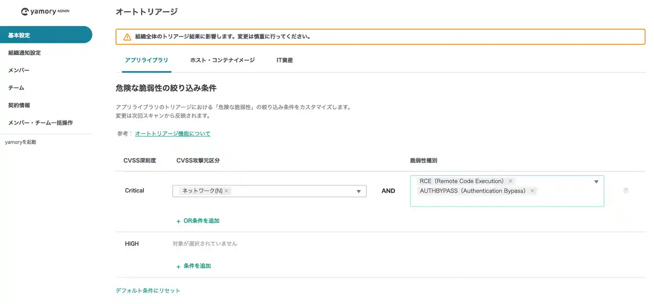 yamoryはこれまで、「オートトリアージ機能」により脆弱性対応の優先度判断における効率化を推進してきました。セキュリティリスクが多様化する現代において、「オートトリアージ機能」による標準的な評価に加え、各組織の固有な環境やリスク許容度に基づいたより効率的な運用を実現するため、本機能の開発に至りました。 |