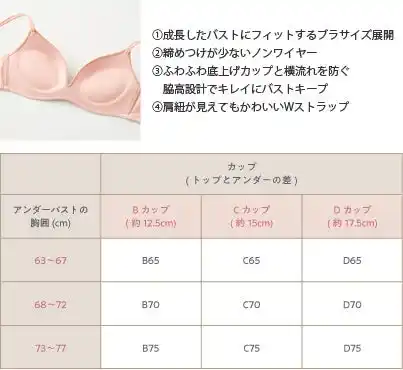 ●サイズ:B65、B70、B75、C65、C70、C75、D65、D70、D75 |