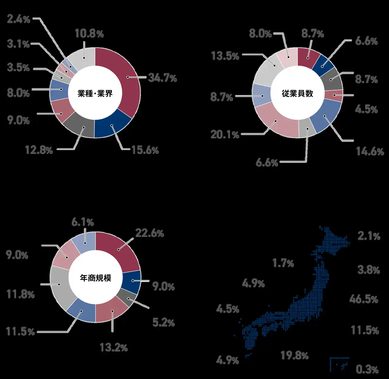 ※本調査では、アンケートにご回答いただいた企業において、従業員規模が2000人超を大企業、300人超~2000人以下の企業を中堅企業、300人以下の企業を中小企業として分類し、分析を行いました。※各図表の構成比(%)は小数点以下第2位を四捨五入しているため、合計しても100%にならない場合があります。 |