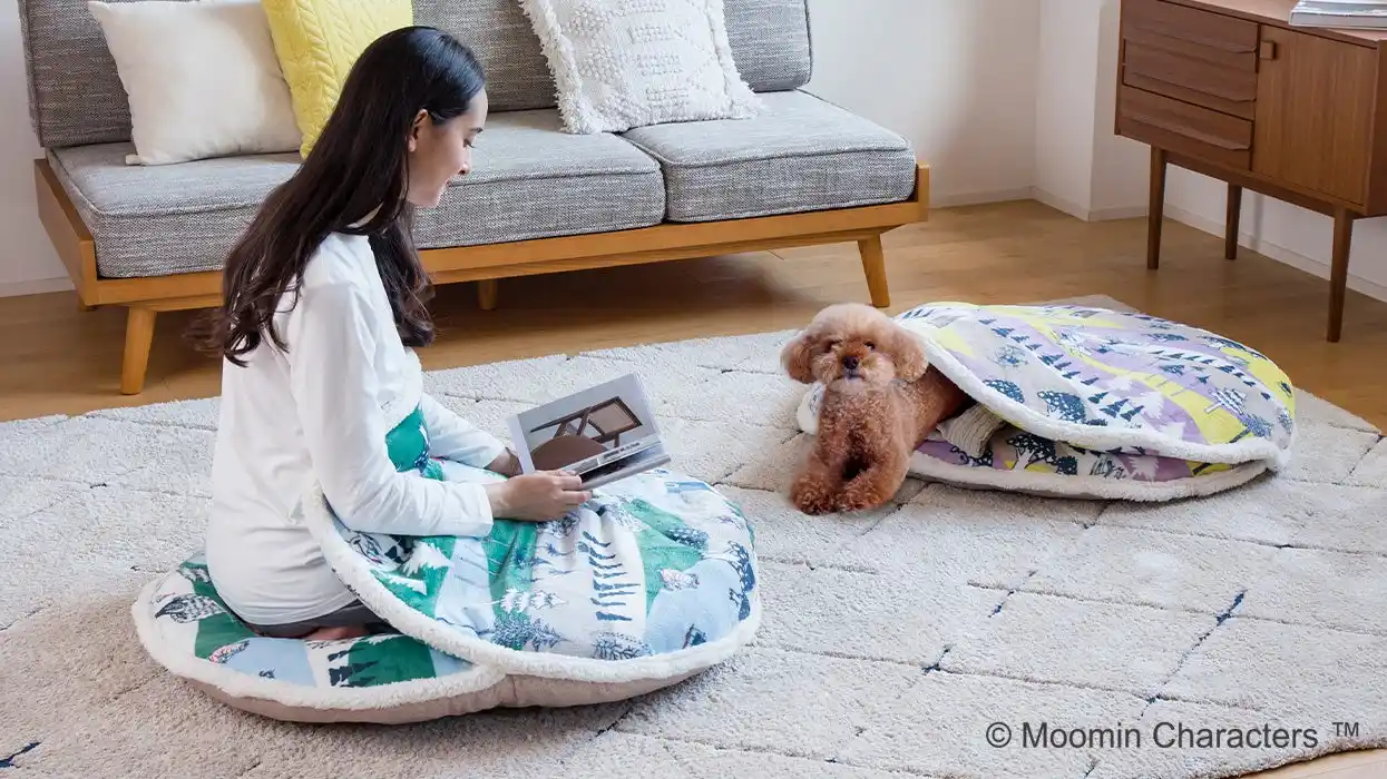 | かわいいムーミン柄のあったか足入れクッション、座布団とひざ掛けが一体化した優れもの暖かさ◎ | |||
