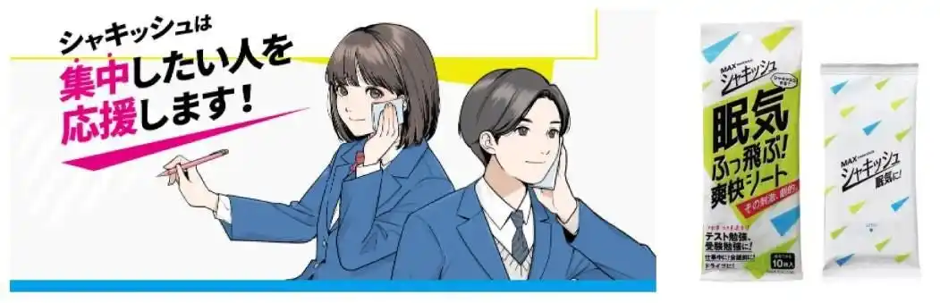 本企画では、受験勉強中に気分をリフレッシュするアイテムとして話題の、清涼ウェットシート『シャキッシュ』(マックス社)を10,000名の大学受験生へ配布。眠気が覚めるほどの爽快感による気分転換で、受験直前期の生徒を応援します。 |