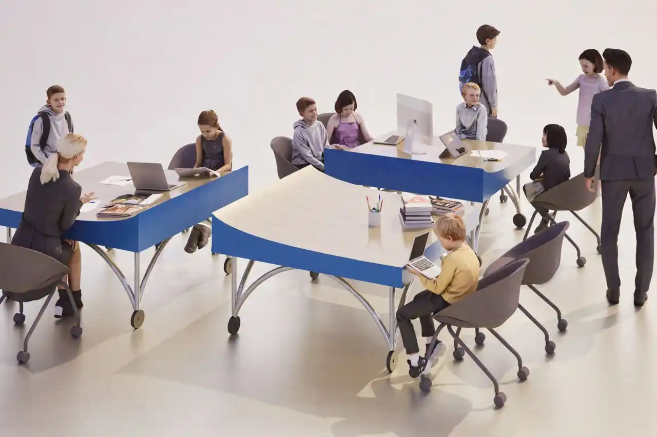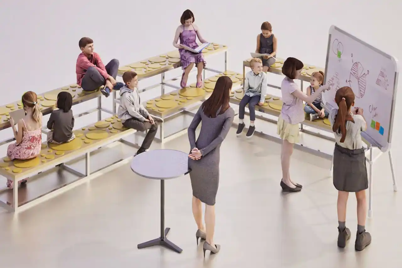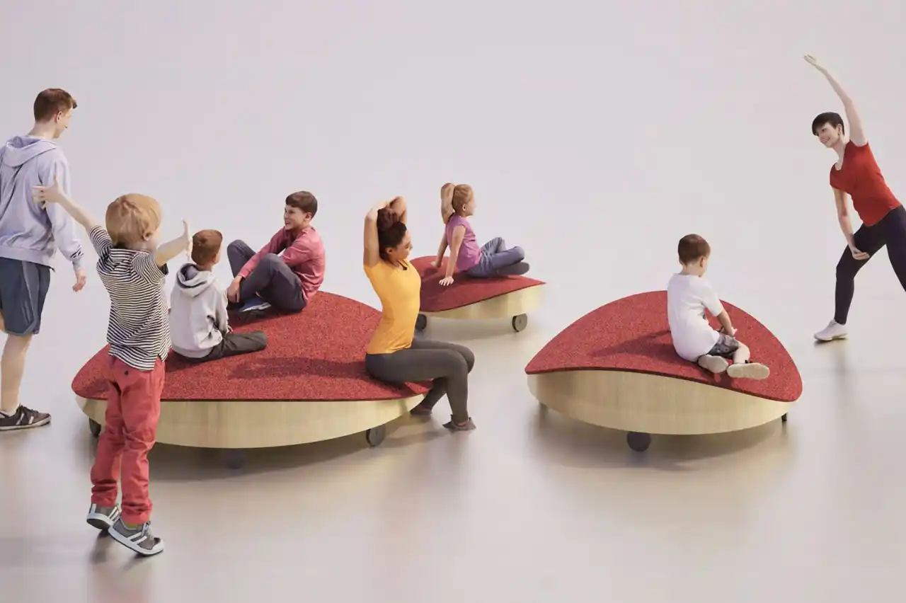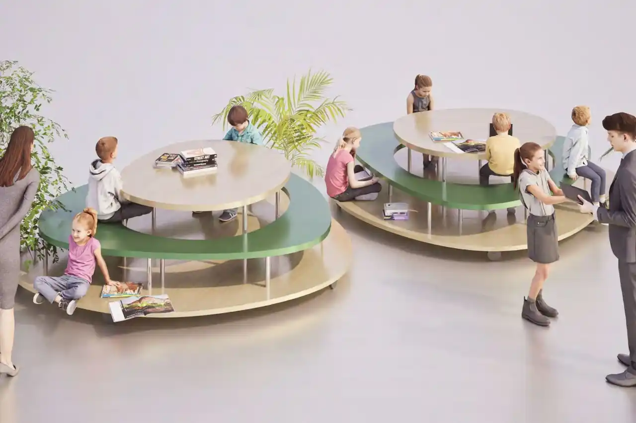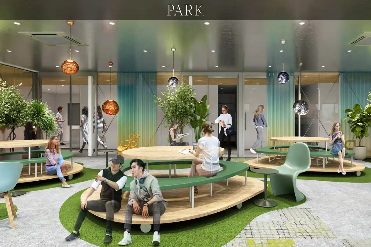 FINDER PARK:公園のように自由な発想で過ごせるラウンジスペースです。可動式の家具を組み合わせることで、グループワークや放課後の自習、生徒同士の語らいなど、目的のない余白の時間から偶発的なコミュニケーションを生み出します。 |