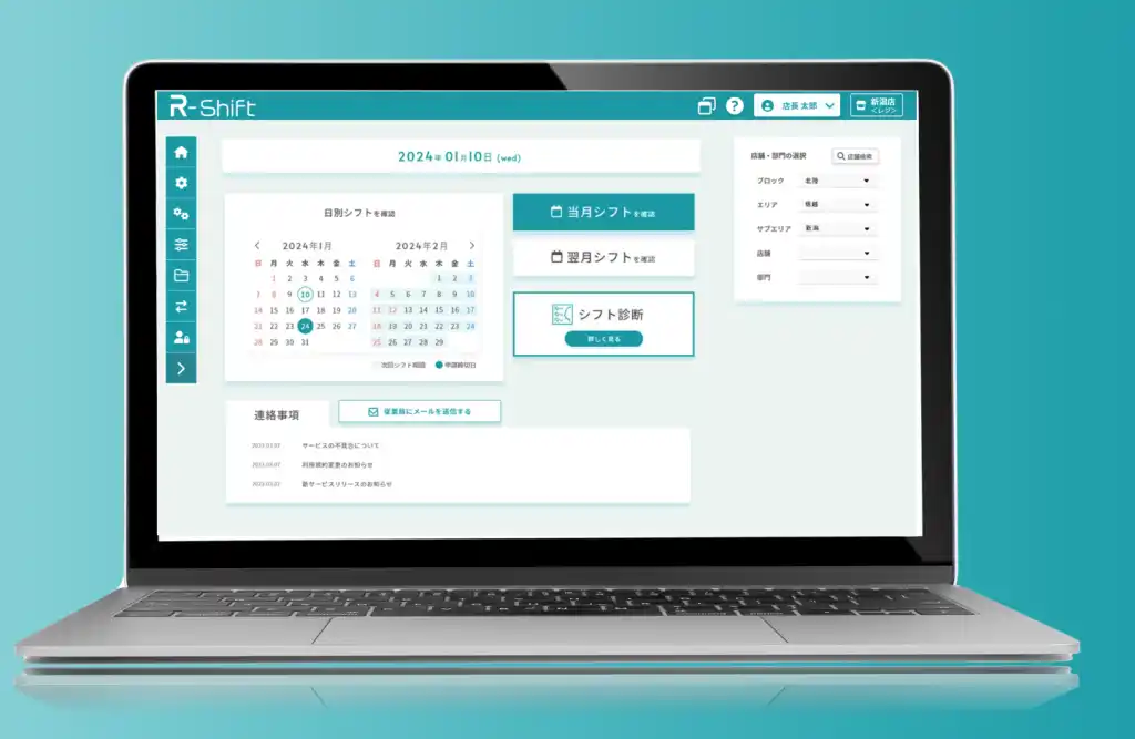 ■「R-Shift」「R-Kintai」は、店舗運営の課題を解決する為のシフト管理・勤怠管理DXです。 |