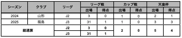 | 【サッカー歴】FC セレスタ→FC みやぎバルセロナ Jr ユース→モンテディオ山形ユース→関東学院大→モンテディオ山形→福島ユナイテッド FC | |||
