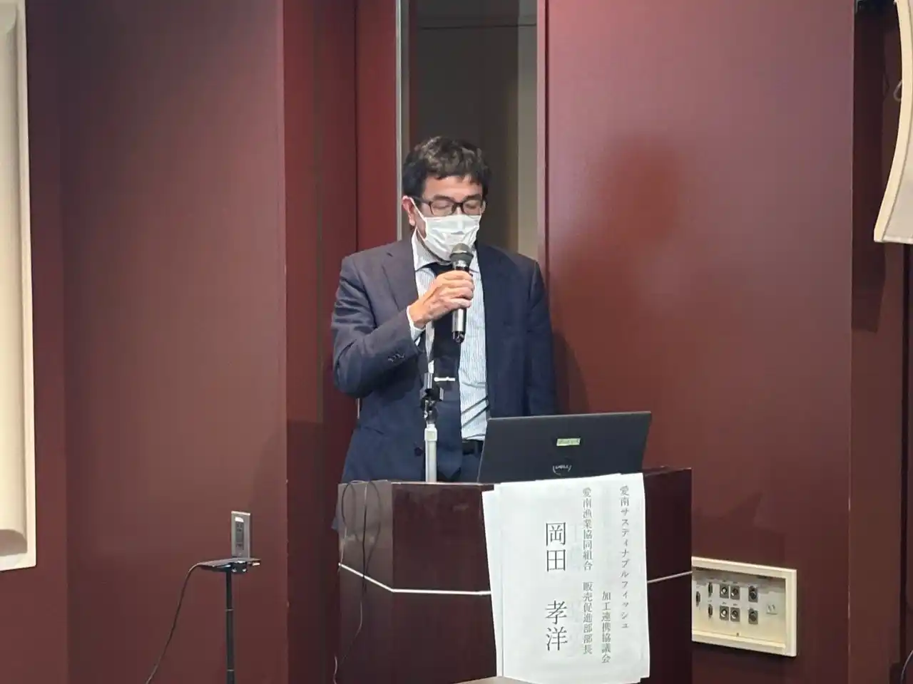 | 萩市水産課の白井氏より、水産業振興と観光誘客を図る「旬の地魚がおいしいまち・萩」推進事業の報告がありました。同市では、値のつかないシマフグの有効活用や、需要が集中するアマダイの供給安定化、魚のアラといった未利用部位の活用が課題となっていました。 | |||