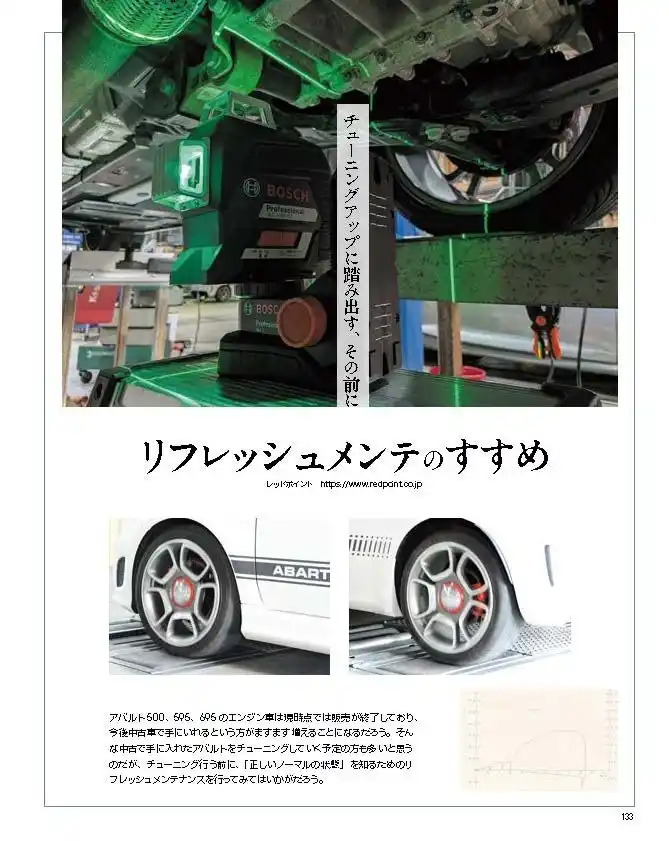 | アバルトを自分流にモディファイすること=チューニングアップ。こんな風に考えることがこのムックの編集基調です。パワーユニット/フットワーク/ブレーキ、この三大要素をメカニズム視点で紹介していきます。単純に“モノの紹介”に終わることなく、チューニングアップの対象パーツの構造や効果にも触れています。目次をご覧になっても、その編集基調は分かっていただけると思います。 | |||||||