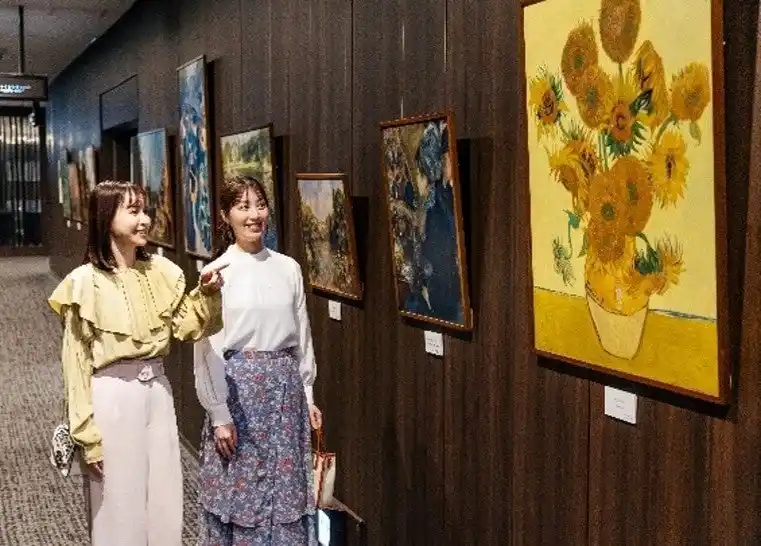 お部屋での世界観を楽しむほか、ホテル1Fでも美術館をイメージした名画の複製画の提示コーナーや |