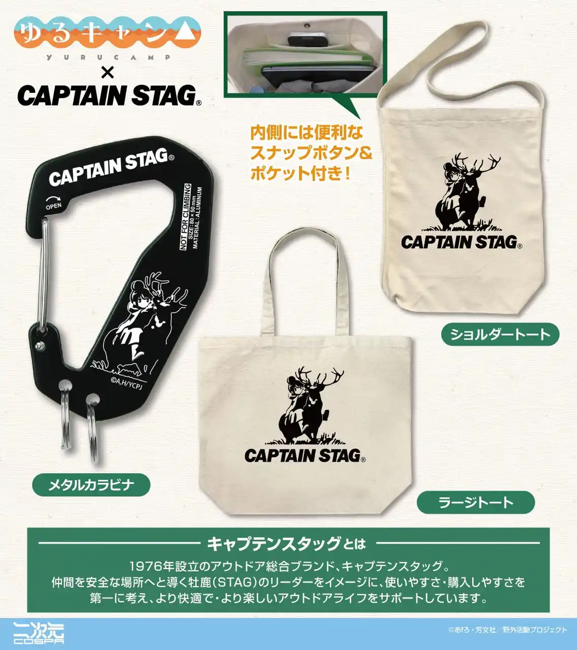 【公式キャラクターアパレル・グッズ/二次元コスパ】『ゆるキャン△』× キャプテンスタッグ 商品情報 |