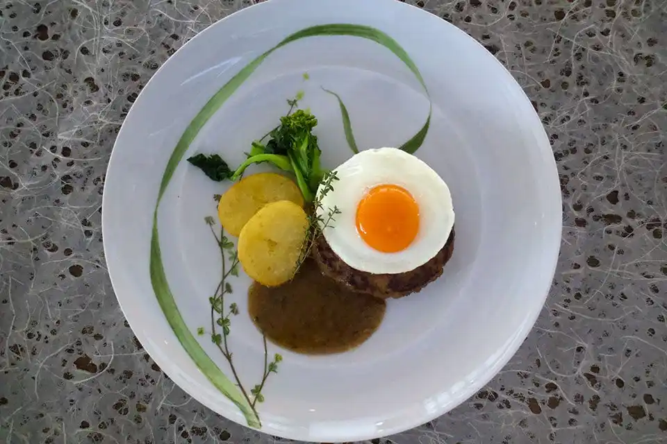 ハンバーグステーキ 川崎産モリモリ卵の目玉焼き エシャロットソース |