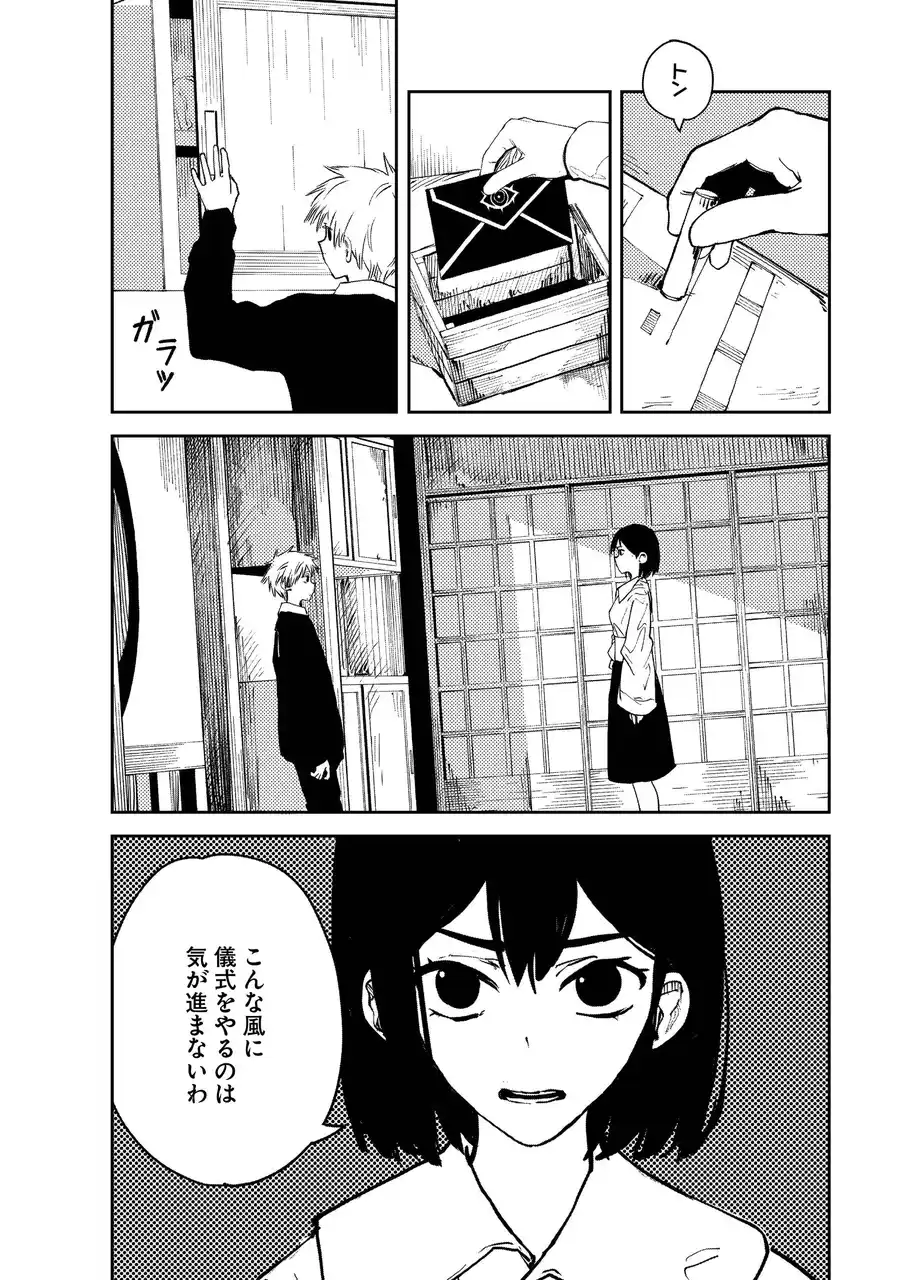 人は死の七日前、天使から“黒い手紙”を受け取る。 この世界では、病気や事故ではなく、あらかじめ定められた日に“消滅”することが死だった。 ごく普通の少年・ルシのもとにも、その手紙が届く。 唯一の友であるトサとの時間を噛み締めながら残された日々を過ごす。 しかし、迎えた消滅の日、儀式を終えて命を手放すはずだったルシは――生きていた。