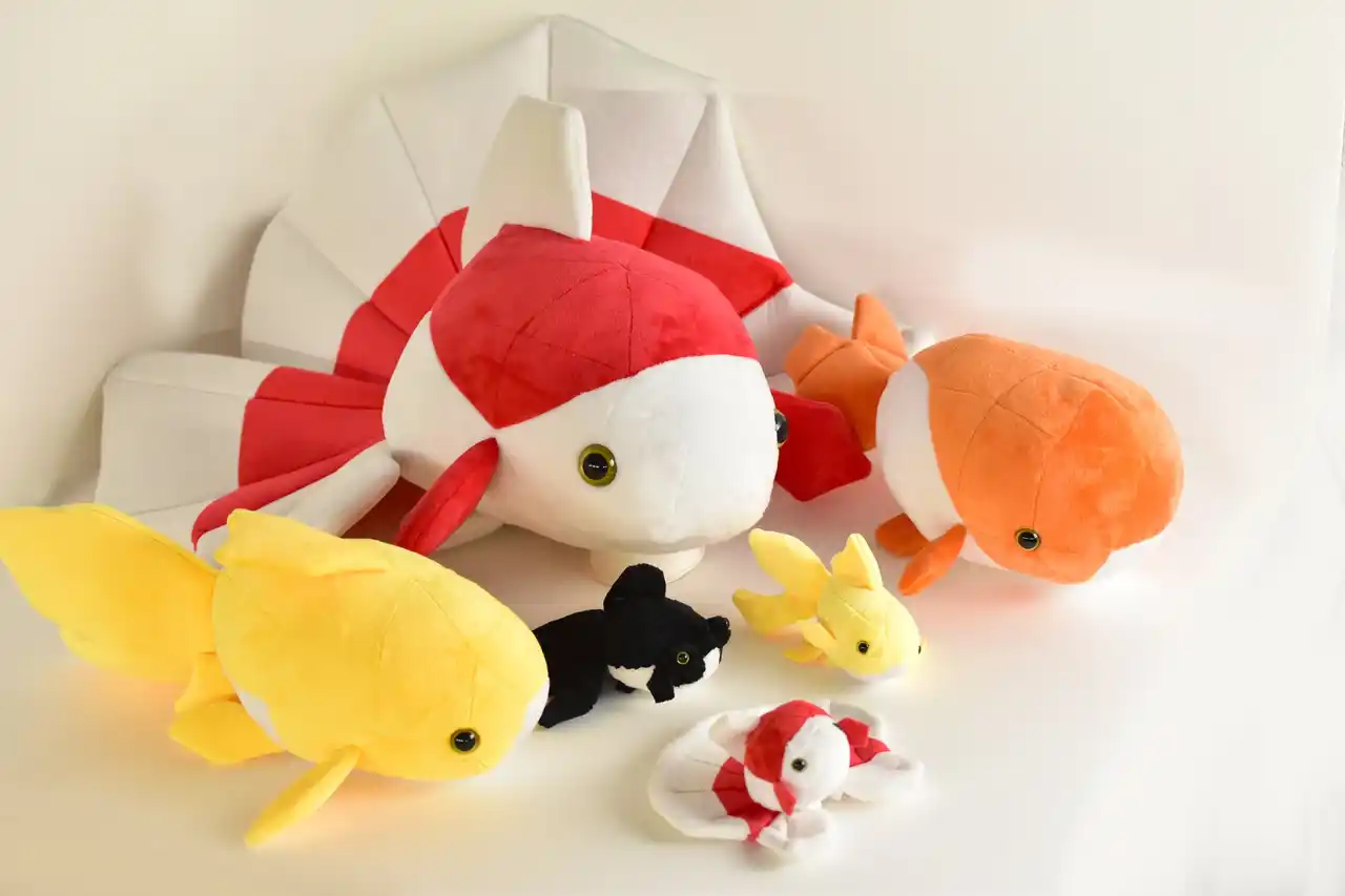 アートアクアリウムで人気の金魚たちをぬいぐるみに。触り心地がよく癒される金魚たち。3サイズで販売しています。 |