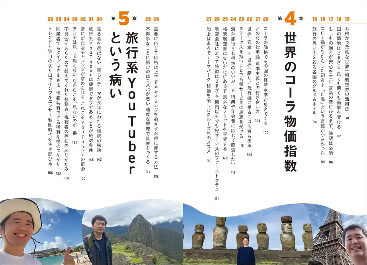 “旅をして、生きていく。行きたいところに全部行く。”をテーマに、世界100ヶ国以上を旅してきた同氏の実体験に基づいたエピソードから見出した、「自由に生きるための教訓」をシェアする内容となっております。スマートフォンのアプリ活用術やクレジットカード特典を用いた賢い旅の仕方、さらにはマイル・ポイ活・投資・旅育、そしてYouTuberとしての活動の裏側についても詳細に綴られています。旅行にご興味のある方はもちろんのこと、現代を生きる全ての方にとって、生き方、働き方、考え方のヒントが詰まった、示唆に富む一冊です。 |