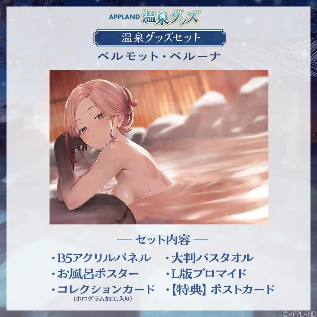 内容物:B5アクリルパネル×1、大判バスタオル×1、お風呂ポスター×1、L版ブロマイド×1、ホログラムコレクションカード×1、ポストカード(紙製/約100×148mm)×1 |
