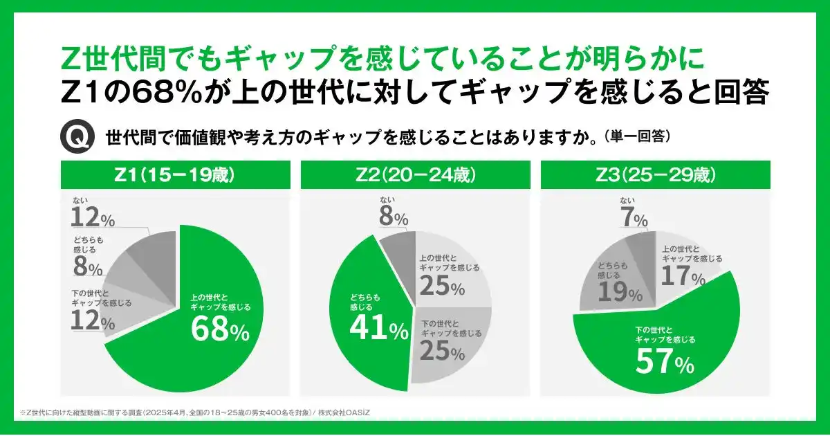 Z世代間でもギャップを感じていることが明らかに!Z1の68%が上の世代に対してギャップを感じると回答 |