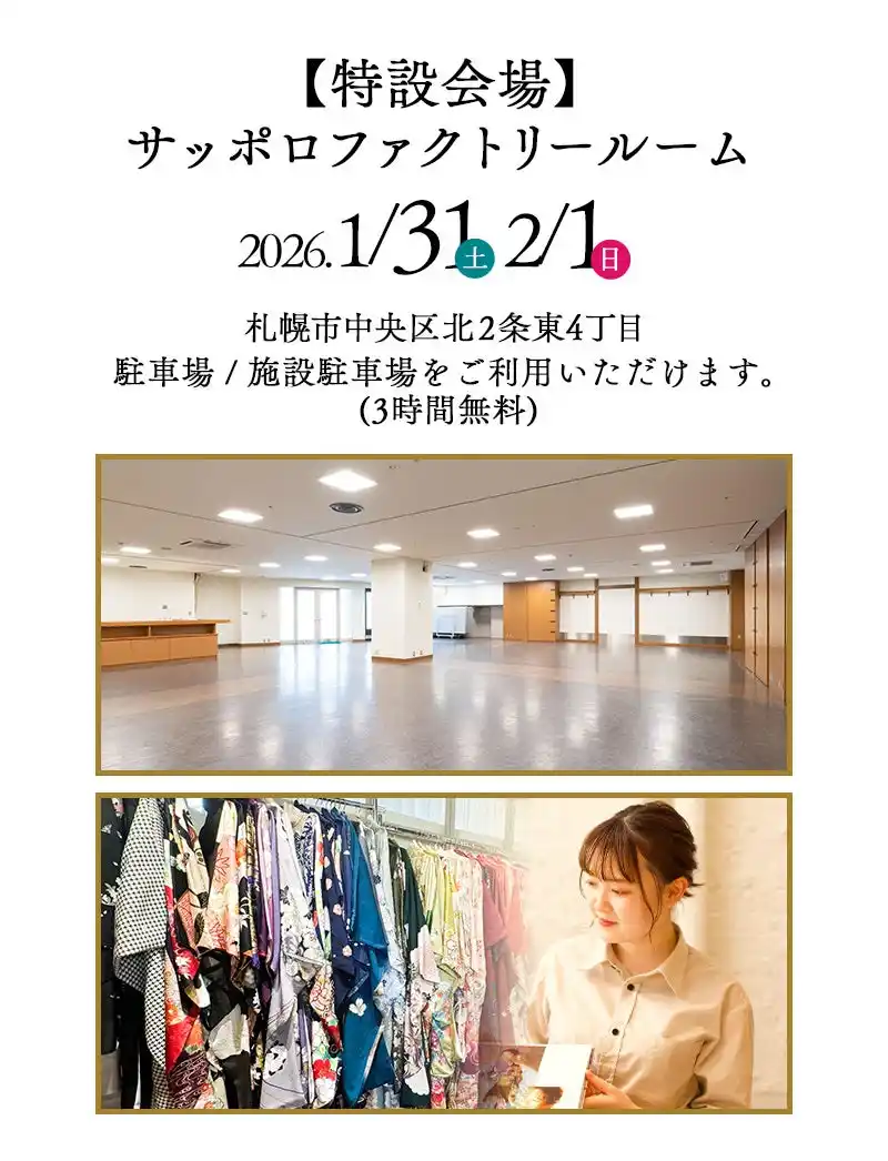 写真工房ぱれっと サッポロファクトリー店とサッポロ中央店が合同で振袖展示会を開催。「ハタチ」という一生に一度の瞬間を、最高に輝く思い出にするための特別イベント「振袖BIG EVENT」です。