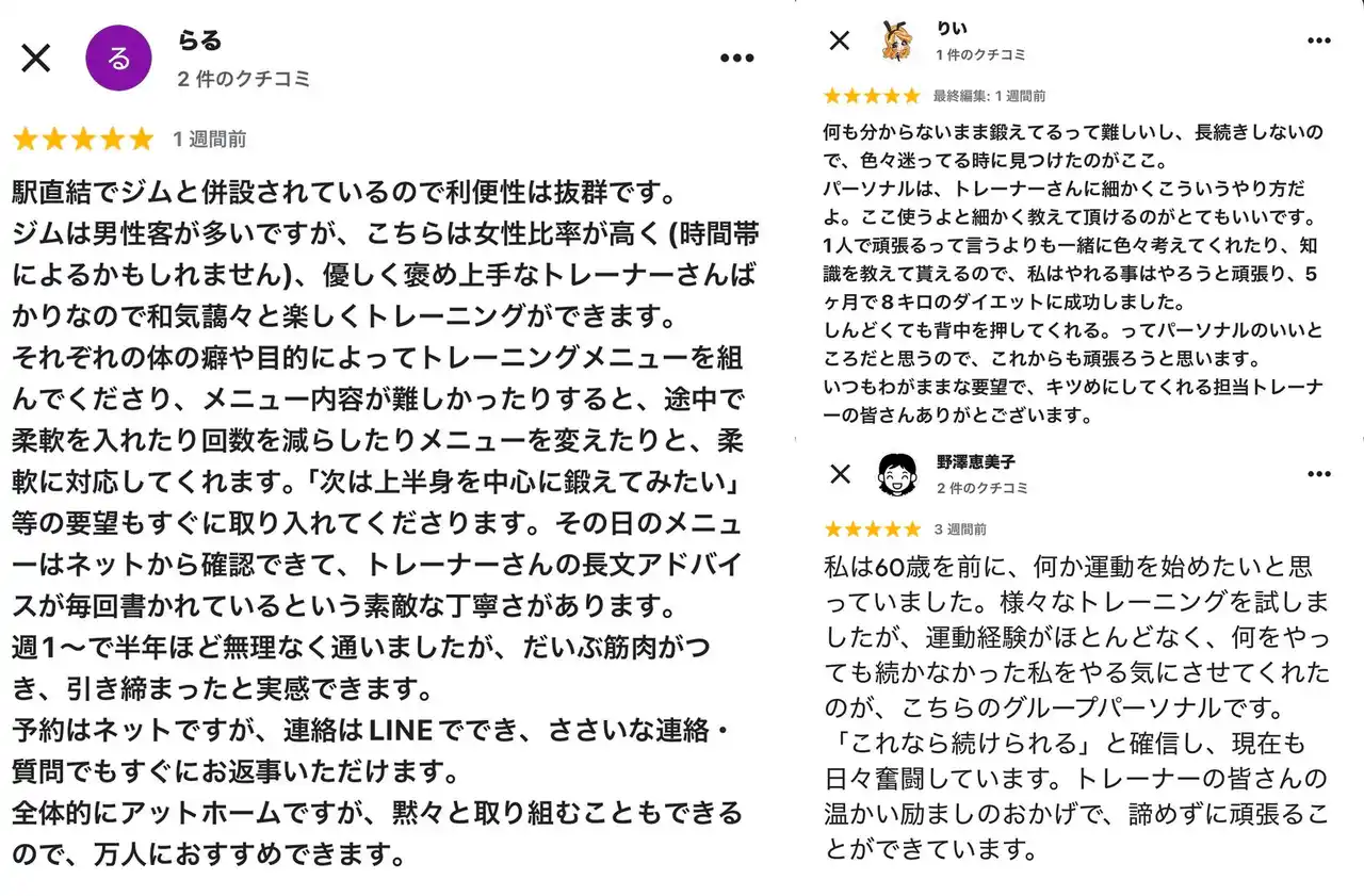 「トレーナーが親切・丁寧で相談しやすい」 |