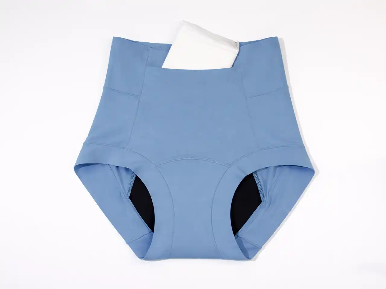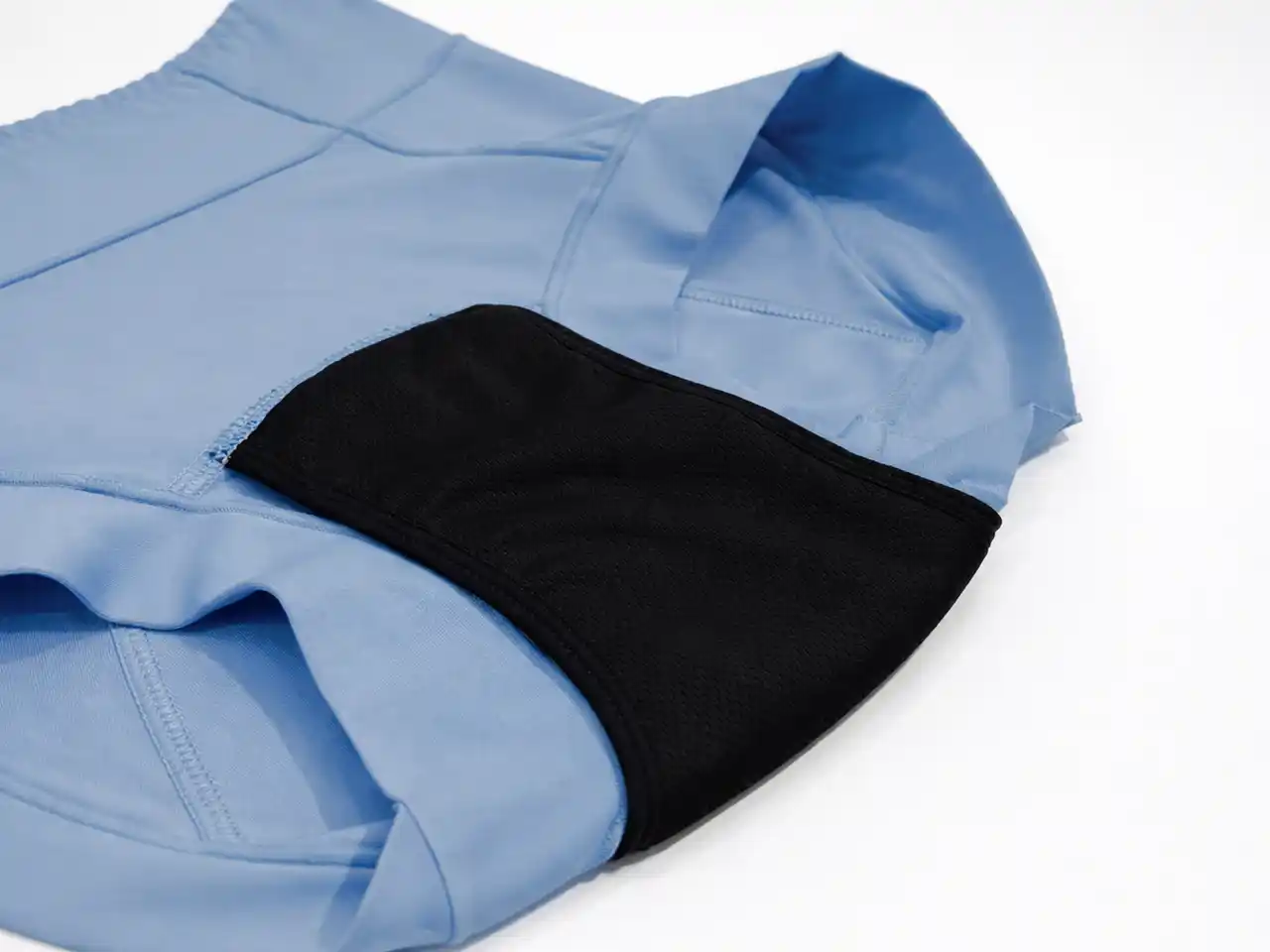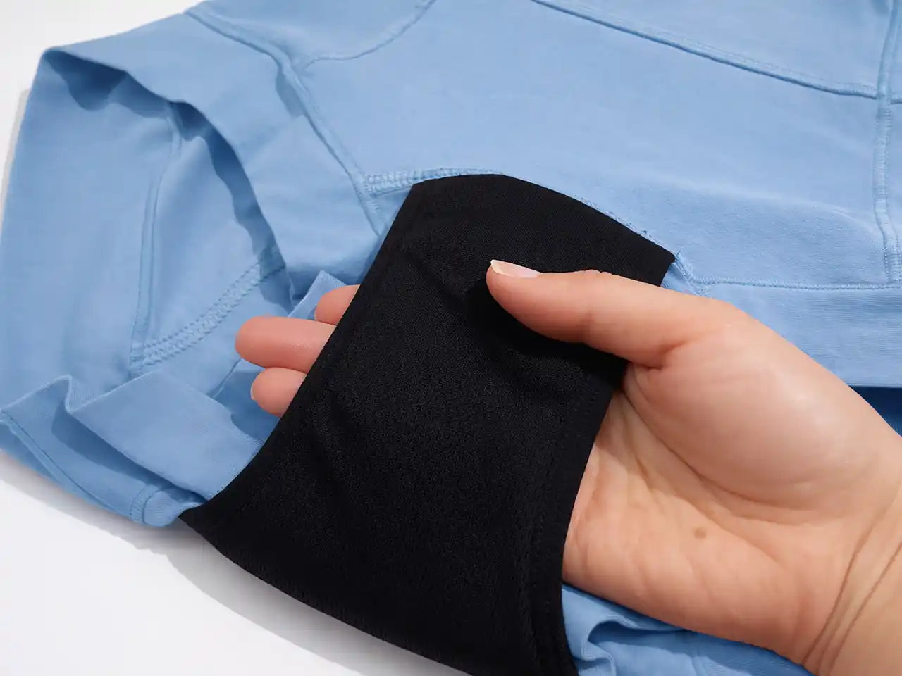 単に履き心地が良いだけでなく、少しでも快適に過ごせるよう機能面にもこだわりました。私自身も含め、ナプキンと吸水ショーツを重ねて使う方が多いため、ナプキンの羽が隠せる二重構造にしています。 |