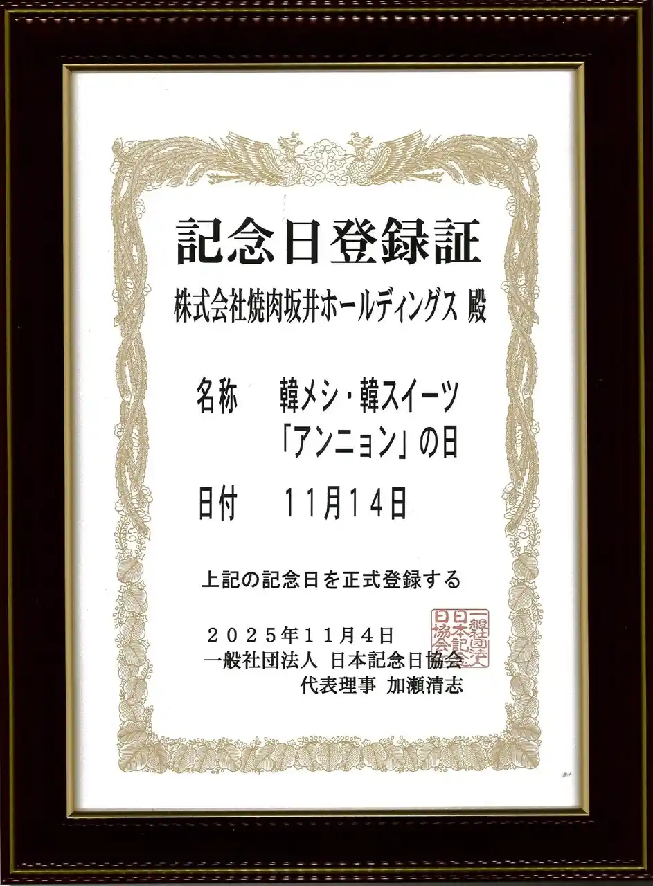 | 11月14日を「韓メシ・韓スイーツ 「アンニョン」の日」に制定いたしました | |||||||||||||||