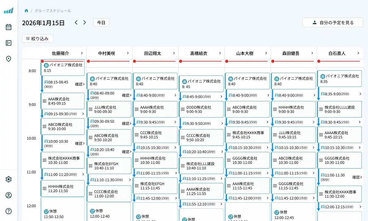 法人契約」をベースにしたナビゲーションアプリと、Webソフトを連携させた訪問・巡回業務向けのクラウドサービスです。最適な訪問ルートの作成や訪問地点・スケジュール管理、ドライバー・管理者の連携・管理機能などにより、メンテナンスやフィールドサービス、営業・管理業務、廃棄物収集・処理、医療・介護など幅広い業種の訪問・巡回業務を効率化します。