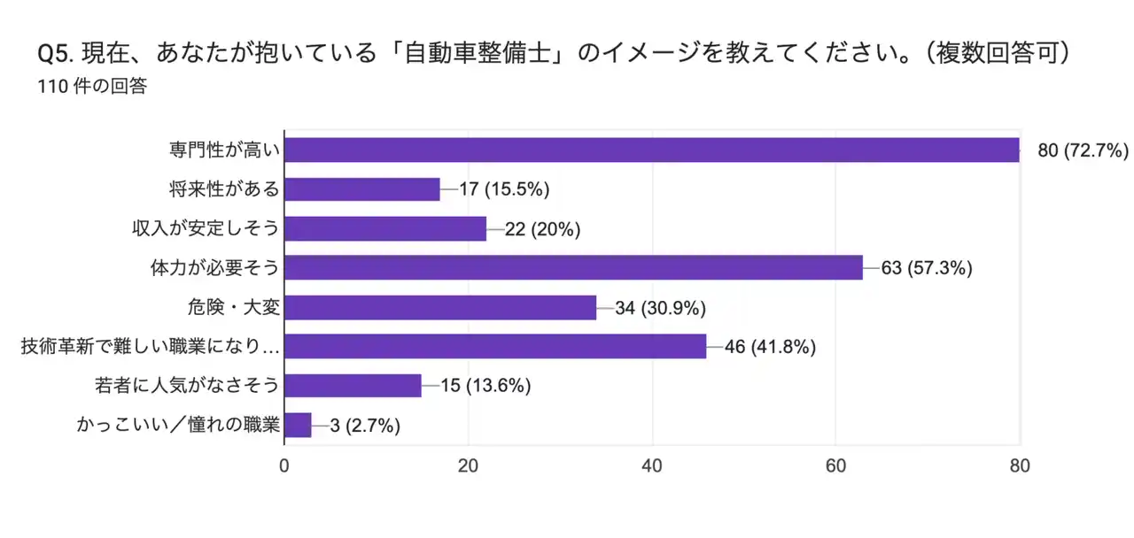 自動車整備士は、「大変そうだが価値が分かりにくい仕事」として捉えられている実態が、この結果から浮かび上がります。 |