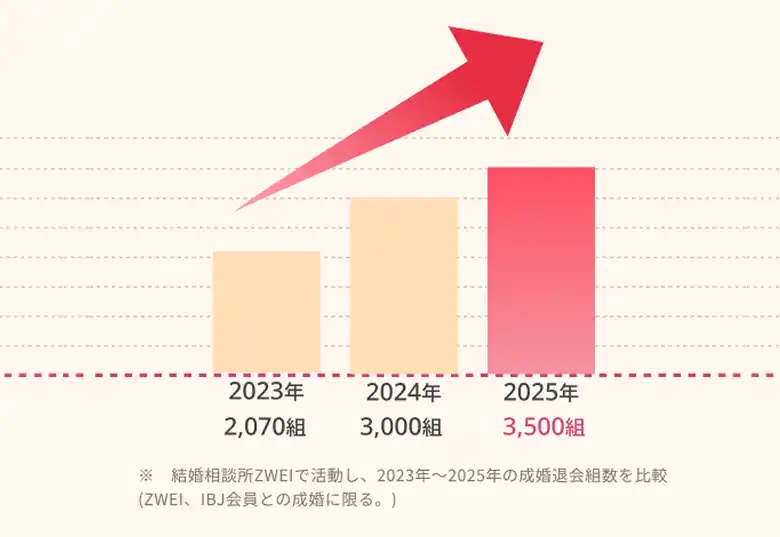 △ZWEIにおける成婚数の推移(2023年~2025年) |