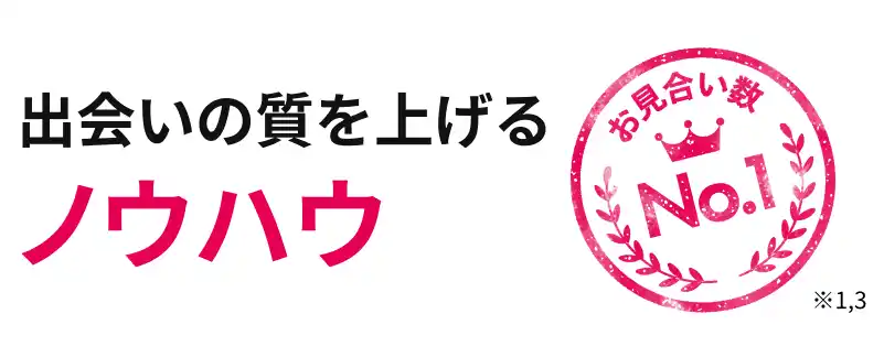 40年以上にわたり積み上げてきた実績と知見から生まれたサポートにより、自分に合う相手と出会いやすい、お見合い数No.1(*1,3)の仕組みを実現しています。 |