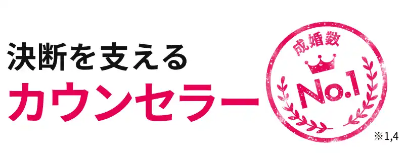 結婚相談所において最も重要なポイントである「人」。 ZWEIでは、専任担当者が一人ひとりの状況に合わせたアドバイスを行い、丁寧に寄り添うサポート体制により成婚数No.1(*1,4)を獲得しています。 |