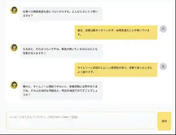 サーベイ結果を起点にU-ZEROのコンサルタントが課題を設定し、AIインタビューを実施。スコアでは捉えきれない“背景や本音”を言語化し、深層的なVoEを収集します。 |