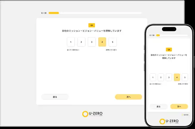 <U-ZERO エンゲージメントサーベイ機能画面イメージ:回答画面(PC、スマートフォン)> |