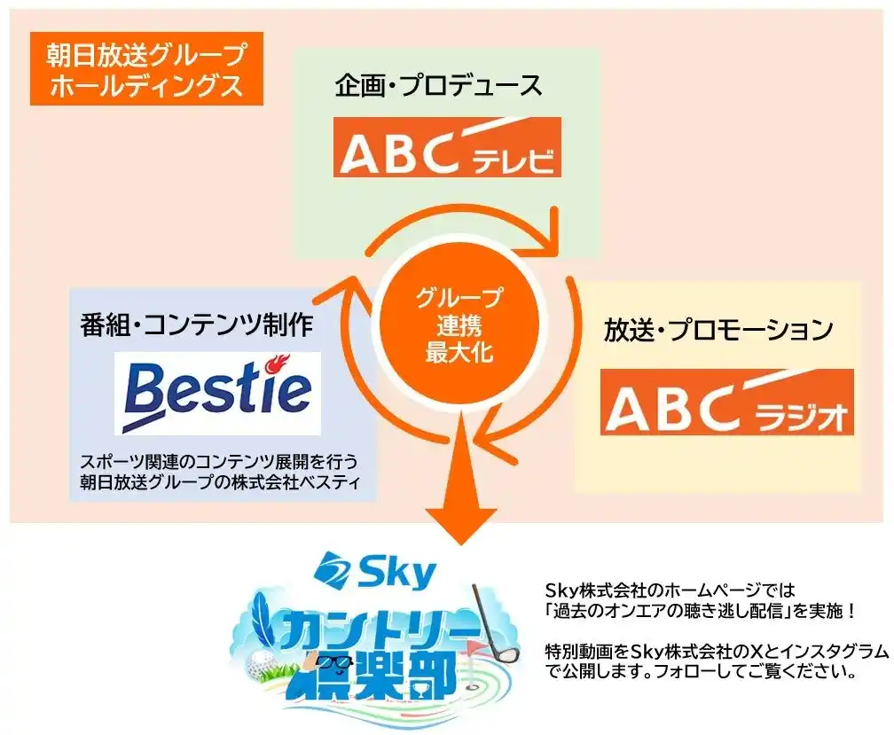 朝日放送グループホールディングス株式会社(本社:大阪市、代表取締役社長:西出将之)のグループ会社、朝日放送テレビ株式会社(本社:大阪市、代表取締役社長:今村俊昭)、スポーツコンテンツ展開を行う株式会社ベスティ(本社:大阪市、代表取締役社長:江崎仁祐)、朝日放送ラジオ株式会社(本社:大阪市、代表取締役社長:高橋靖史)の3社がタッグを組み、Sky株式会社所属の女子プロゴルファーの魅力とゴルフの楽しさをたっぷりとお伝えします。 |