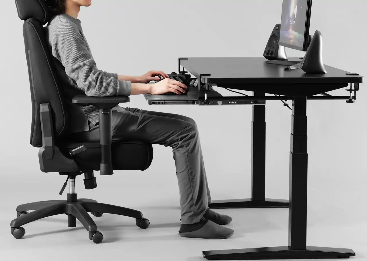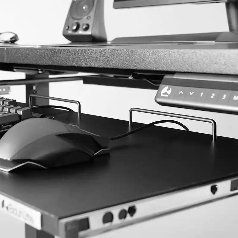 さらに、旧モデルより耐荷重をUPしたタフな設計により、激しいタイピングやマウス操作時にもガタつきやグラつきを抑え、安定したゲーム・クリエイティブ環境を実現します。精密な操作が求められるPCゲームはもちろん、DTMにおける鍵盤操作などにも集中力を途切れさせることなく没頭できる、快適な使用感を提供します。 |