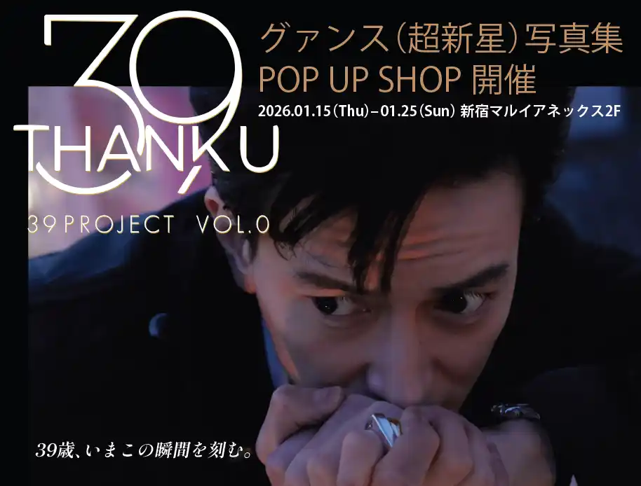 「39PROJECTは、39歳という今だからこそ表現できる姿、想い、挑戦を多角的なコンテンツとして発信していく年間プロジェクトです。ジャンルにとらわれない多彩な企画を通じて、これまで支えてくれたファンへの“Thank you”の気持ち、そして次のステージへ向かう決意を届けていきます。 |