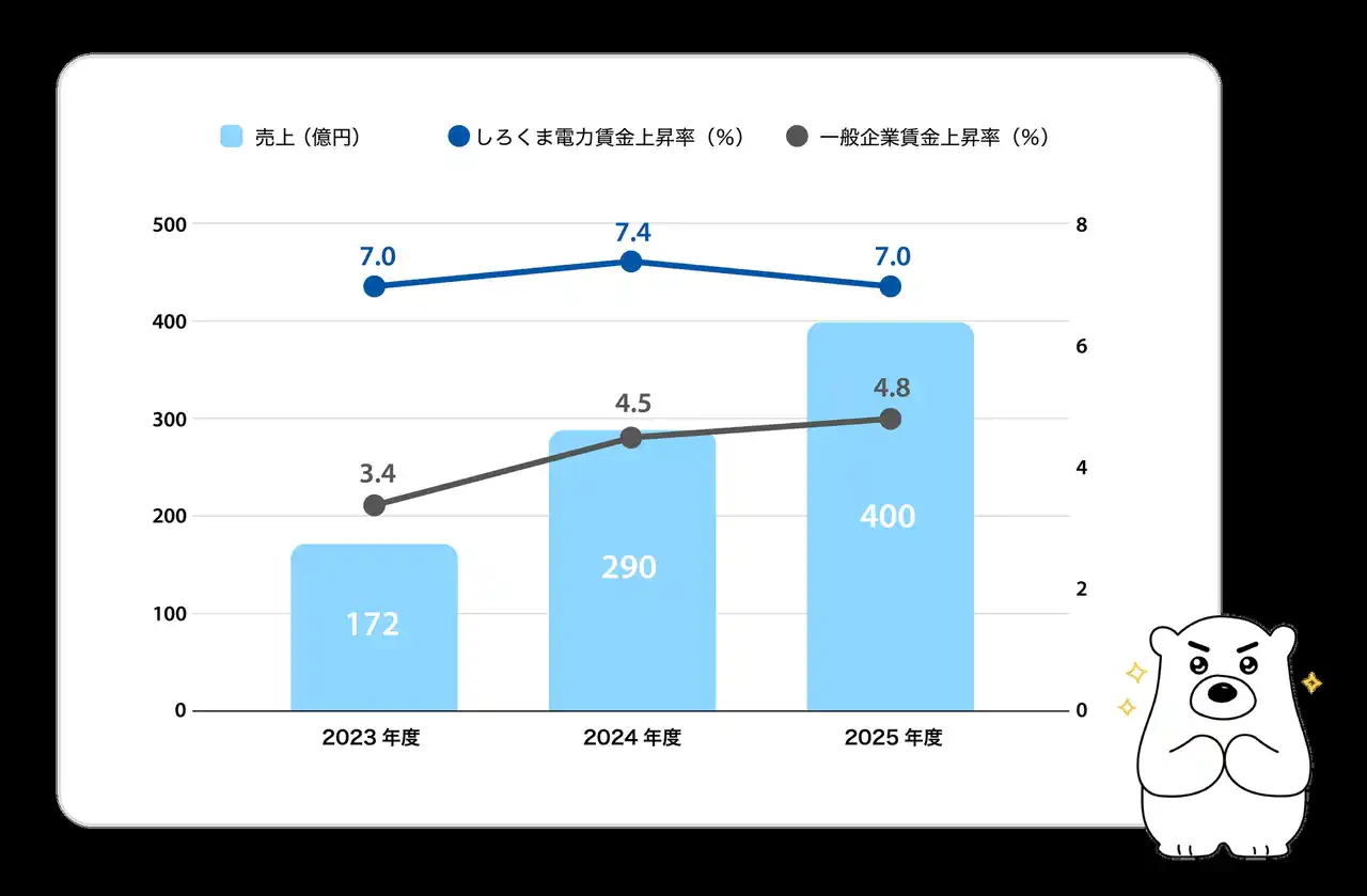 しろくま電力の売上推移と賃金上昇率 |
