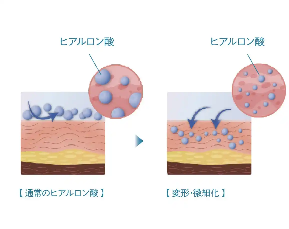 ヒアルロン酸ならではの高い保水力を保ちながら、角質層までの浸透を叶え、安定的に効果を発揮させることに成功。 |