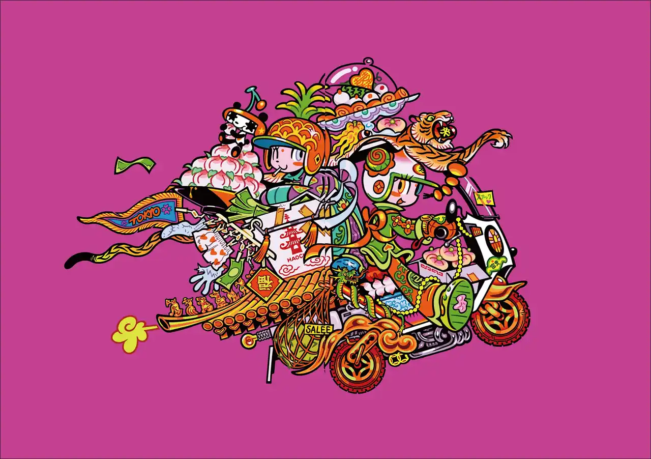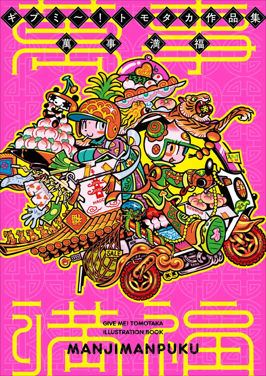世界が注目するギブミ~!トモタカ初の作品集。活動初期から最新作まで150点超を、特殊な高色域インキで凝縮した至高の一冊『ギブミ~!トモタカ作品集 萬事満福』1月発売