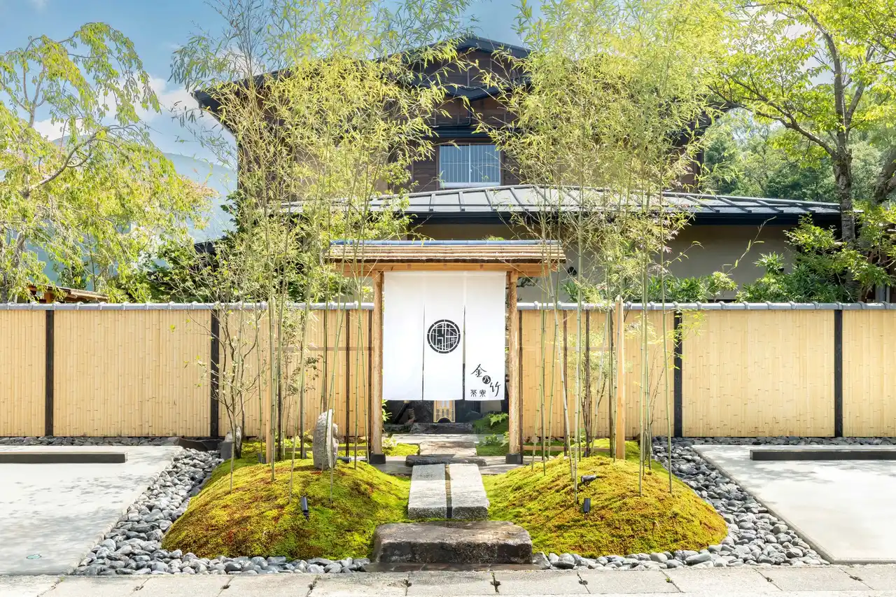 金乃竹 茶寮は、2022年8月に“泊まれない旅館”として神奈川県・箱根仙石原にオープンしました。 そのコンセプトは、同グループ施設「金乃竹 仙石原」が描く『竹取物語』の世界観を、より気軽に体験していただくこと。全6室のうち4室は客室専用の露天風呂付き、さらに2階の2室には専用の貸切露天風呂をご用意。いずれも白濁の源泉かけ流し温泉をお愉しみいただける、上質な空間となっております。 |