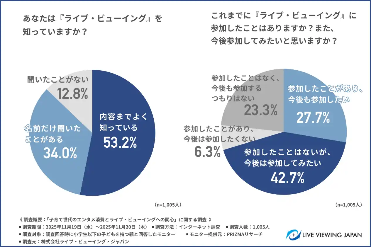 株式会社ライブ・ビューイング・ジャパン(所在地:東京都港区、代表取締役社長:青木 普起)は、小学生以下の子どもを持つ親を対象に「子育て世代のエンタメ消費とライブ・ビューイングへの関心」に関する調査を行いました。