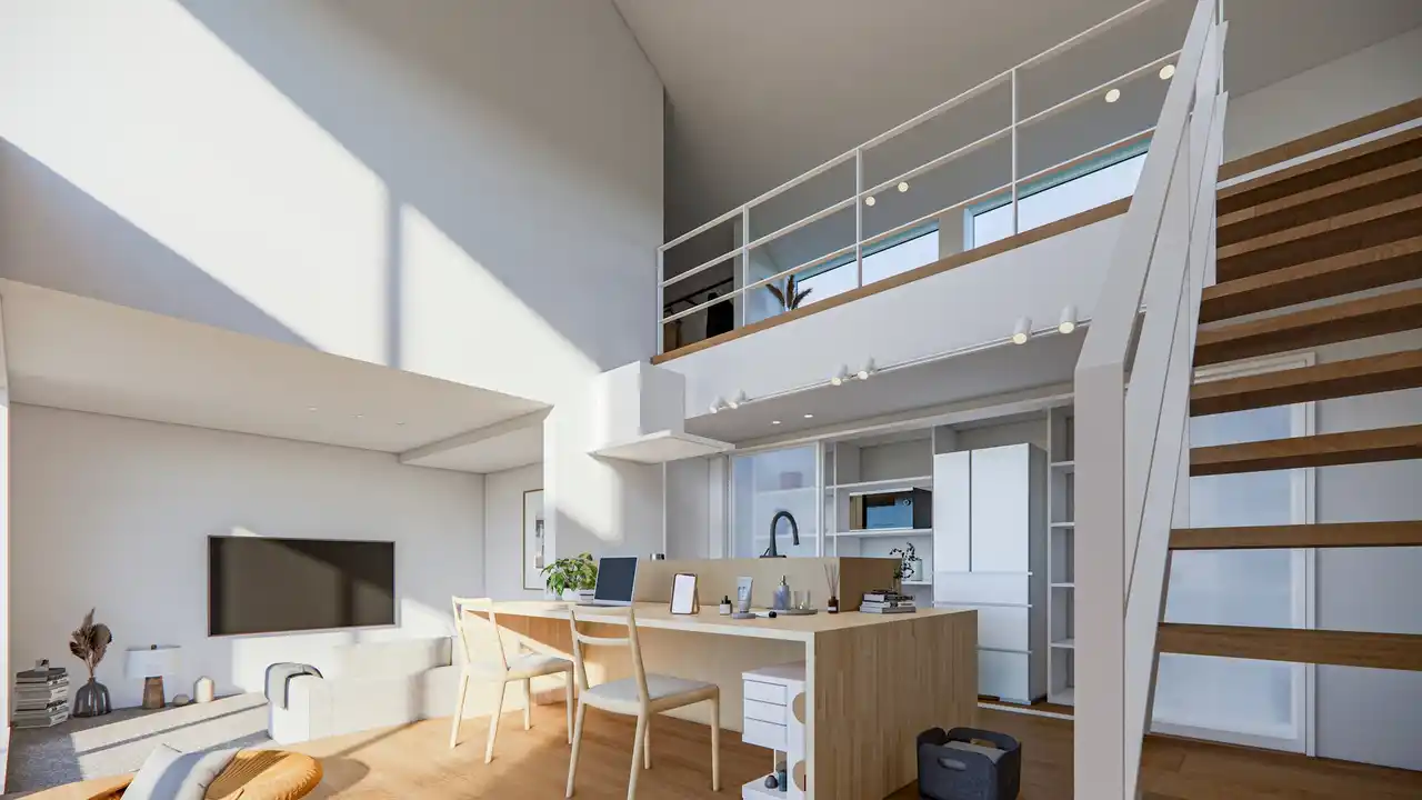 ・天井を低く抑えたロフト風のシェアスペースでは、少し距離感を保ちながら一緒に過ごすことが可能 |